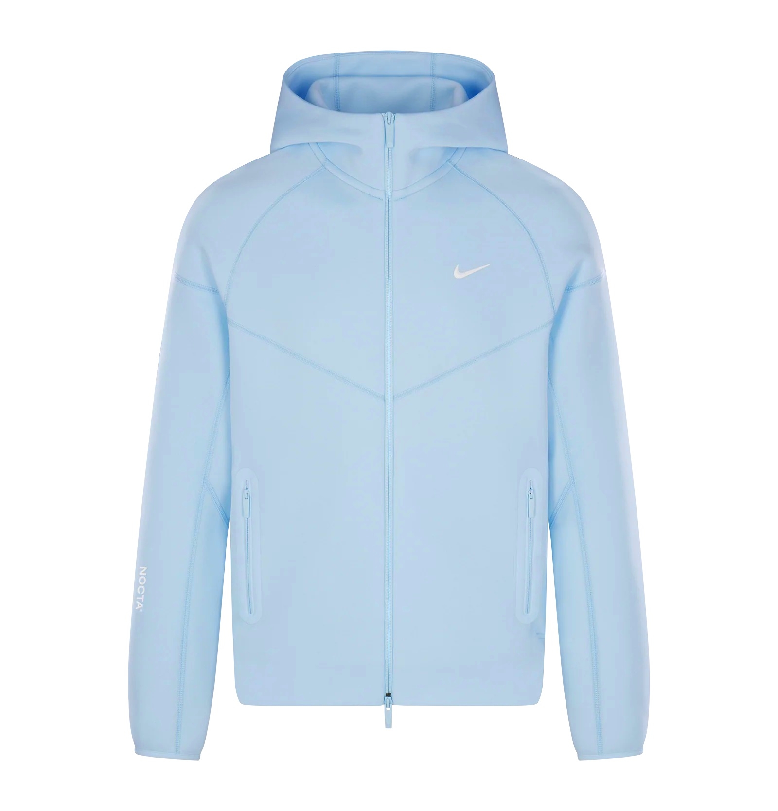NOCTA Tech Fleece Hoodie é uma peça de assinatura projetada para ser usada em camadas e conforto. As características distintas e os detalhes incluem um capuz de camada dupla, zíper + puxador moldado em metal NOCTA, chevron premium, mangas articuladas, acabamentos de bainha com nervuras, bolsos laterais NOCTA e logotipos NOCTA HD.